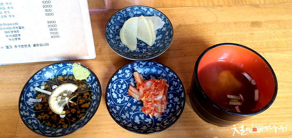 김치와 유자단무지는 테이블에 담아있는 반찬통에서 직접 꺼내서 먹으면 됩니다.