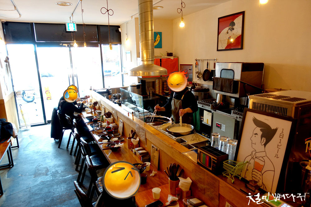 식당 내부는 주방을 중심으로 'ㄴ'자 형태의 테이블이 길게 있었고,