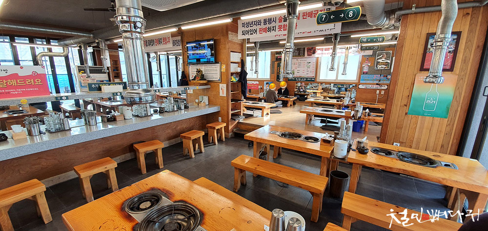 갈라진 부분에는 혼자서 혼밥 할 수 있는 테이블 형태로 구성이 되어 있습니다.