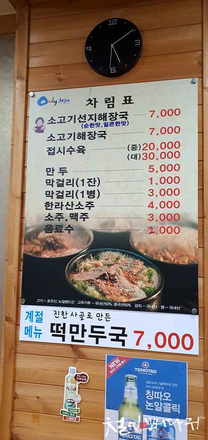 입구에 제주도의 인사말이 적혀있어서 제주도 식당 같다는 느낌입니다.