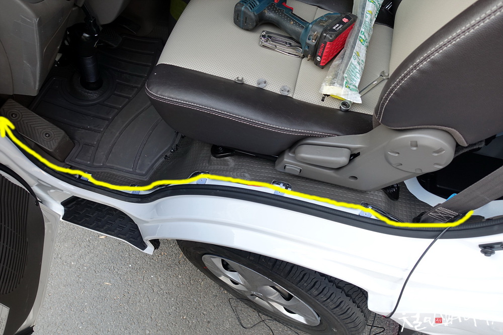 운전석 문을 열고 옆면의 커버를 나사를 풀어서 벗겨낸후 매립으로 배선을 쉽게 정리할 수 있습니다.