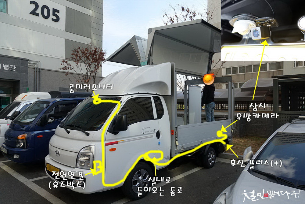 현대포터2윙바디탑차 적재함카메라.모니터 설치 - https://chulinbone.tistory.com/8784
