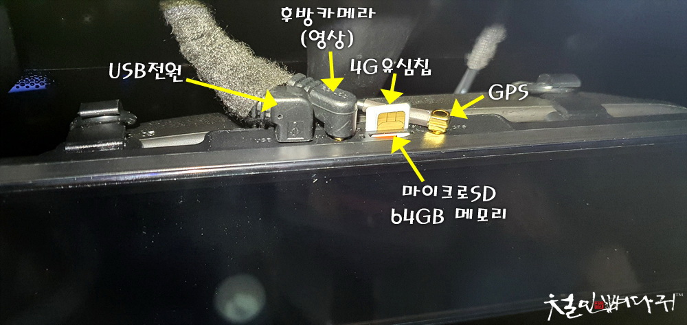 룸미러모니터 상단의 메모리슬롯 바로 옆에 있는 유심슬롯에 삽입을 합니다.