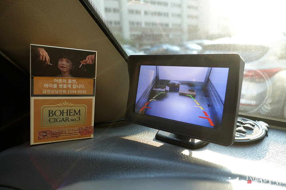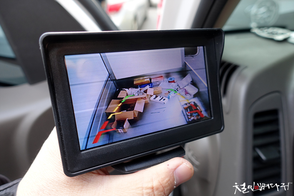 운전석 왼쪽 앞 대시보드 위에 모니터를 고정했는데,