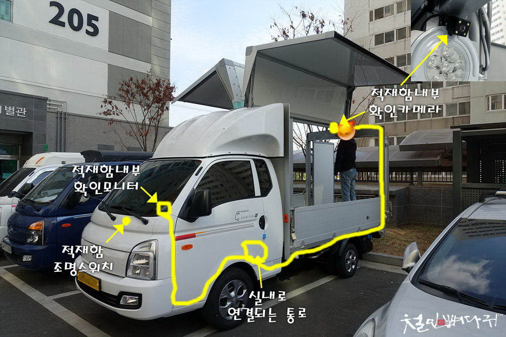 현대포터2윙바디탑차 적재함카메라.모니터 설치 - https://chulinbone.tistory.com/8784