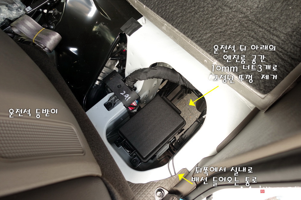 운전석 뒤 바닥에 엔진룸 쪽에서 실내로 들어올 수 있는 뚜껑이 있어서