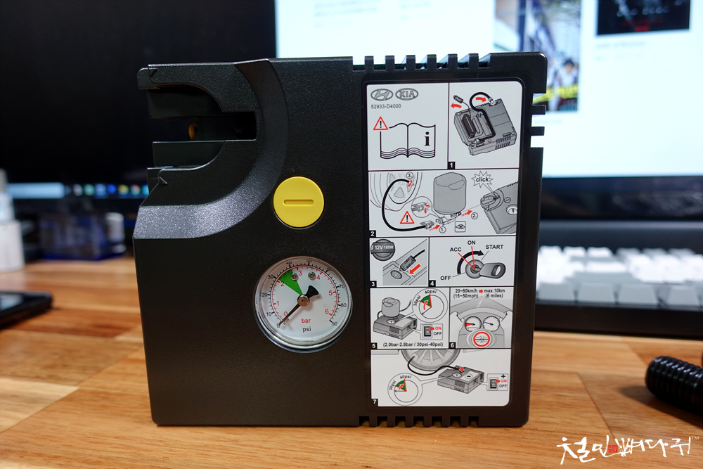 에어펌프는 12V 씨가잭에 연결해서 타이어에 공기를 채워줄 수 있습니다.