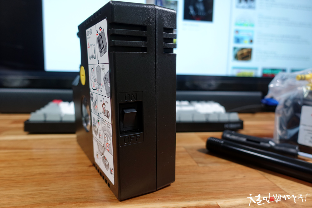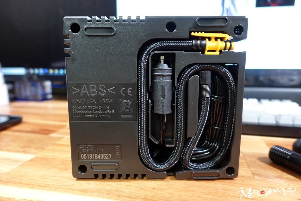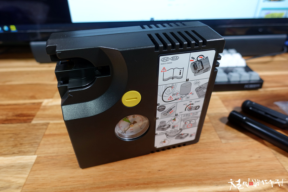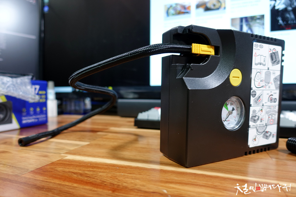 에어펌프에 12V씨가잭이나, 공기주입호스 같은 것들이 내장되어 있어