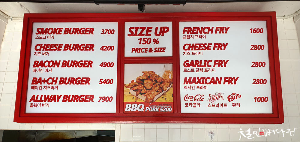 모든메뉴는 사이즈업이 있어서 추가요금으로 용량을 늘릴 수 있습니다.