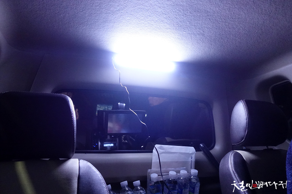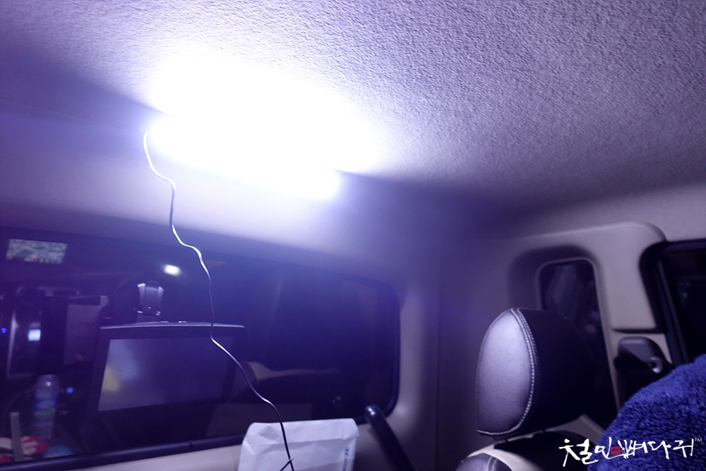 전선정리도 안 하고 임시 거치해봤는데, 포터 기본 실내등보다 많은 밝기 차이가 있어서