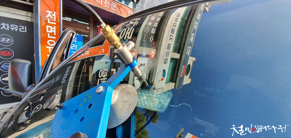돌빵을 맞으면, 유리가 금이 가기 전에 빠르게 유리복원 업체로 가서 유리복원 작업을 하는 것이