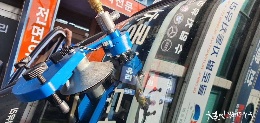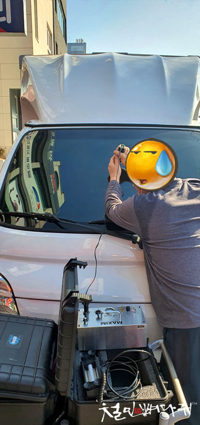 겹유리라서 물이 새거나 그러지는 않지만, 운전석 방향으로 금이 가면, 운전하면서 신경이 쓰이기 마련입니다.