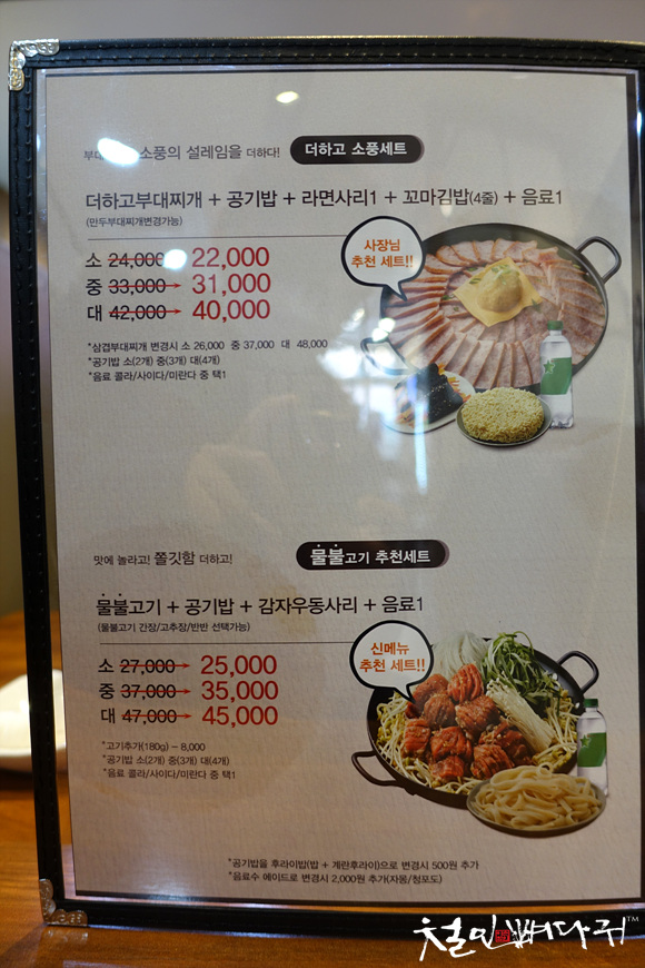 더하고 부대찌개와 물불고기는 다른 메뉴들과 다르게