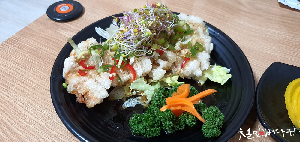 약간 시큼짭짤한 소스가 바닥에 있어서 적셔서 먹었는데, 맛있었습니다.