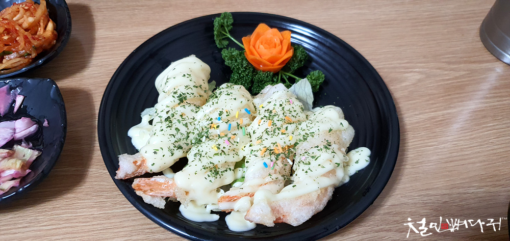 새우가 4마리 나오는데, 중새우 답게 크기가 일반 새우보다 큽니다.