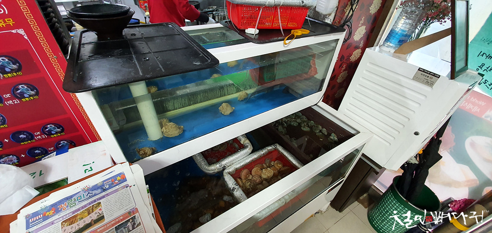 식당 안으로 들어가면, 수조가 있어서 싱싱한 해산물을 사용한다는 것을 알 수 있습니다.