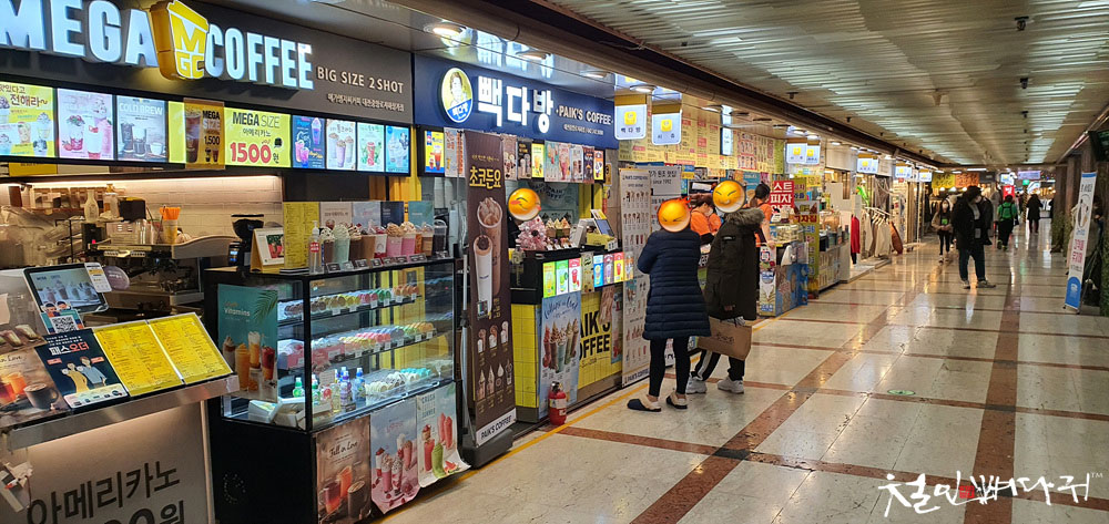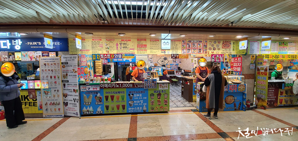 대전 신지하상가에는 여러 개의 즉석에서 만들어 주는 음료들을 마실수 있는 상점들이 있습니다.