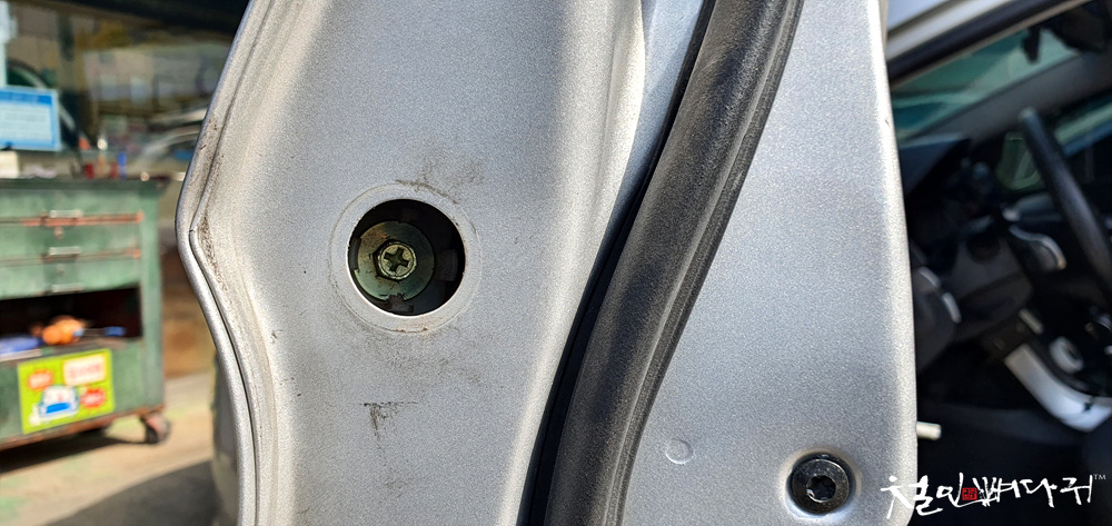 고쳐본다고, 문 옆쪽의 나사까지 다 풀어서,