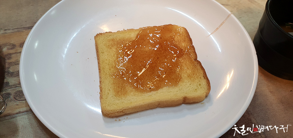 배불러서 식빵을 토스트기에 굽고, 딸기쨈 발라서 먹고,