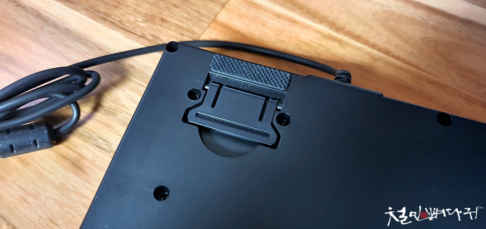 바닥 양쪽으로 높이 조절 받침대가 접혀서 내장되어 있습니다.