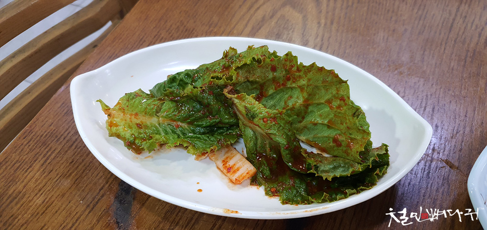 반찬 중에 상추겉절이도 있습니다.
