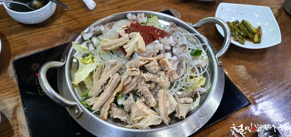 제일 잘 팔리는 메뉴로, 산낙양곱전골(산낙지양곱창전골)이라고 해서,