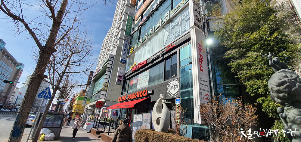 서대전 4거리 근처, 세이백화점 건너 미스터피자가 빌딩 2층에 있습니다.