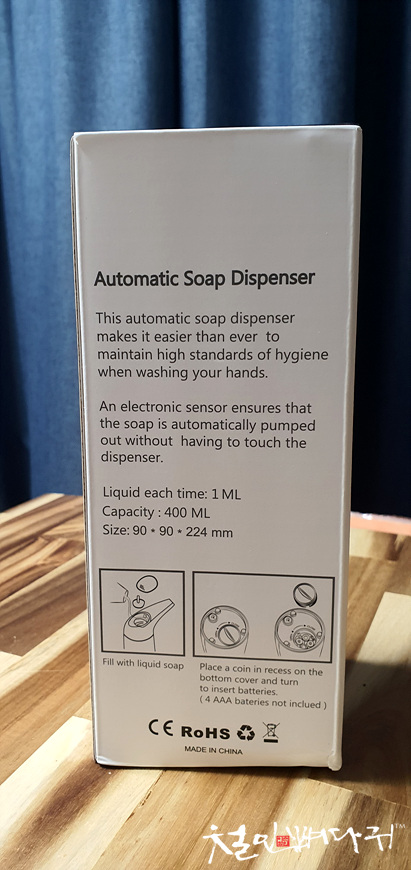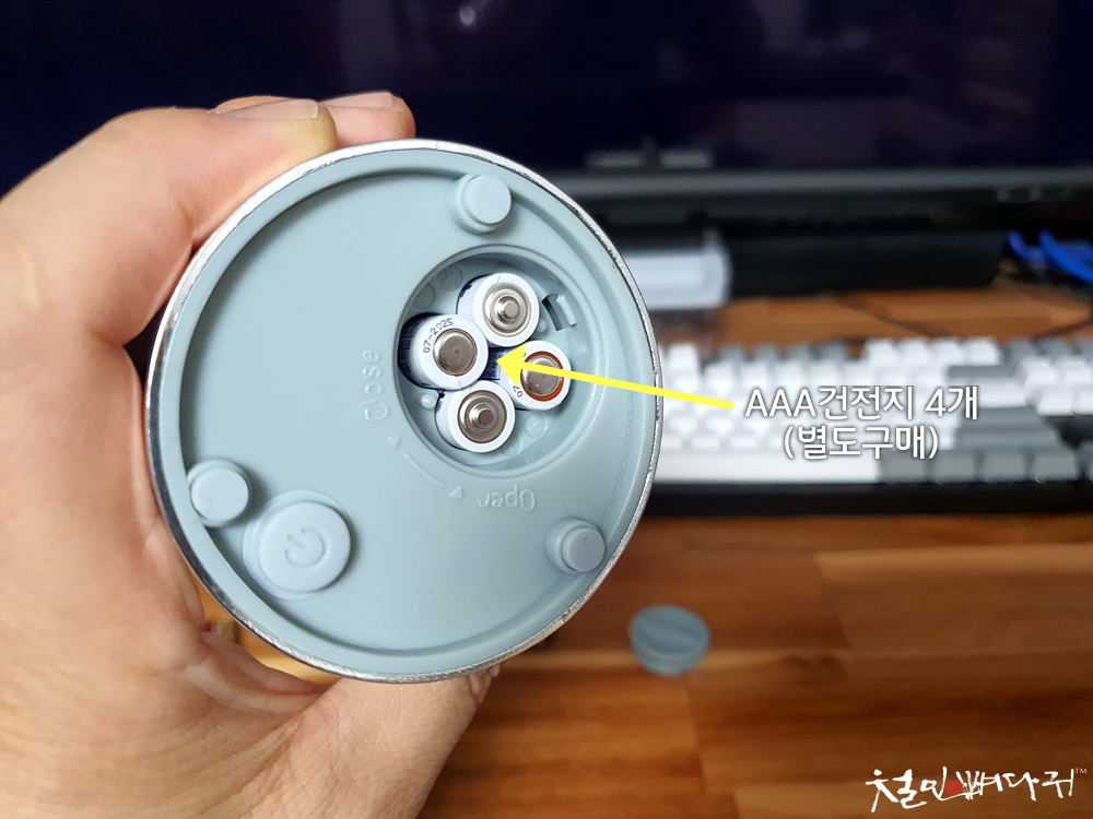 AAA건전지 4개가 필요한데, 별도로 구매해서 넣어주었습니다.