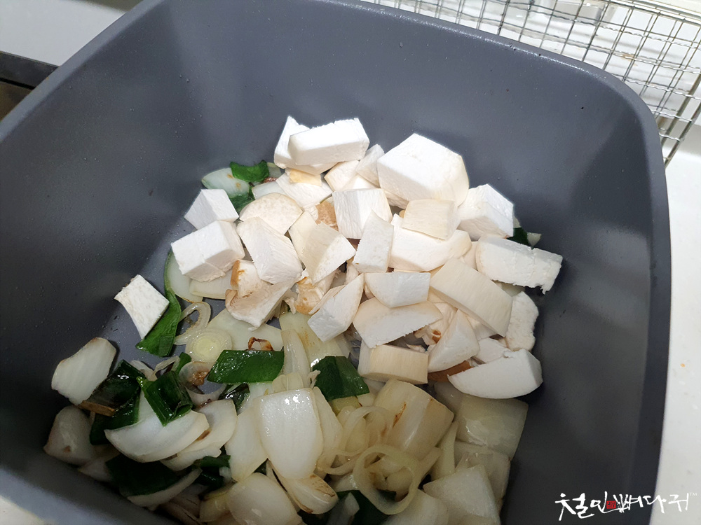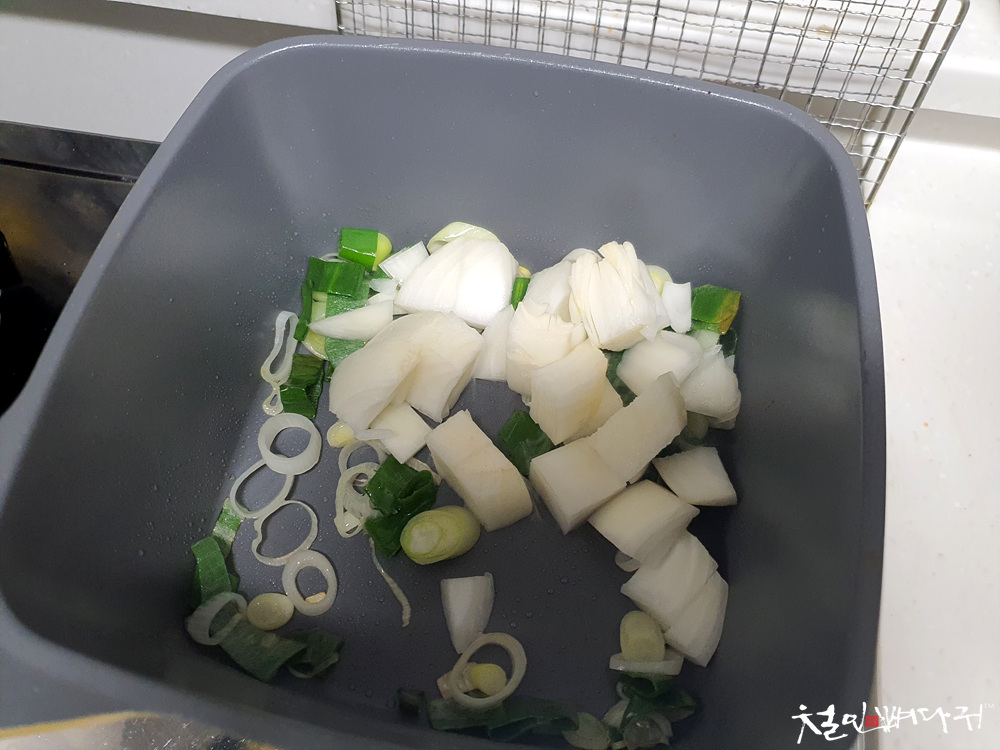 양파를 잘라서 추가로 넣어서 또, 달달달 볶아준후,
