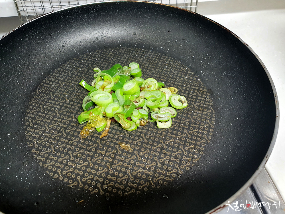 프라이팬에 기름을 두르고 파를 송송 잘라준 것을 넣고 달달달 볶아줍니다.