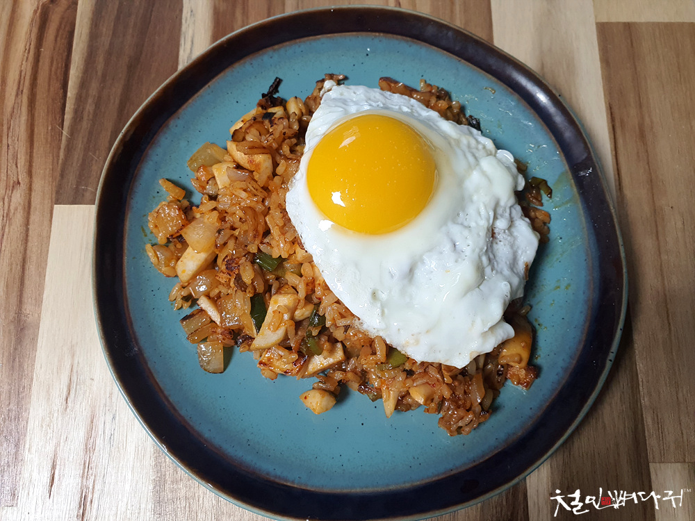 볶음밥에 달걀프라이까지 올려주면 완전한 완성입니다.