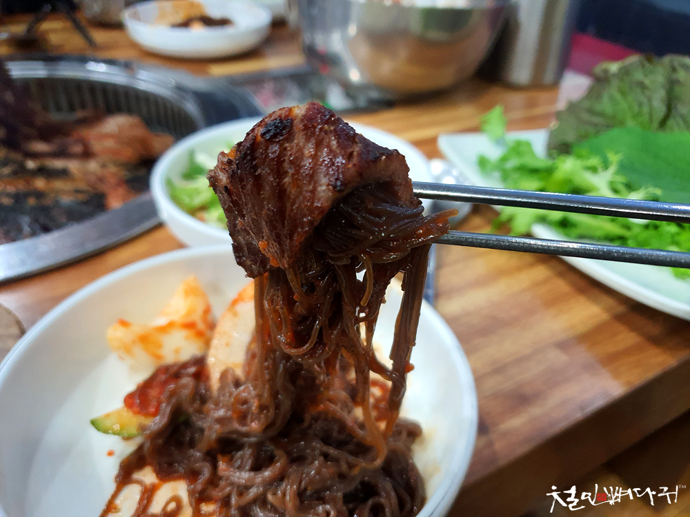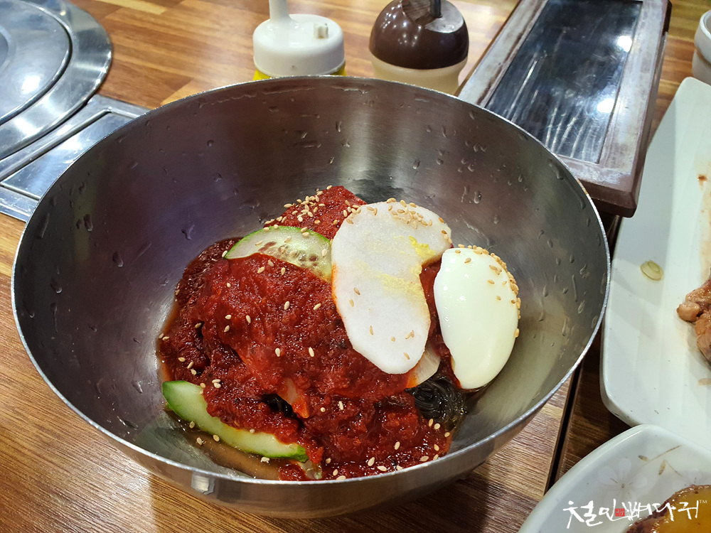 비빔냉면과 돼지갈비랑 같이 먹는 것이 아주 괜찮은 방법입니다.