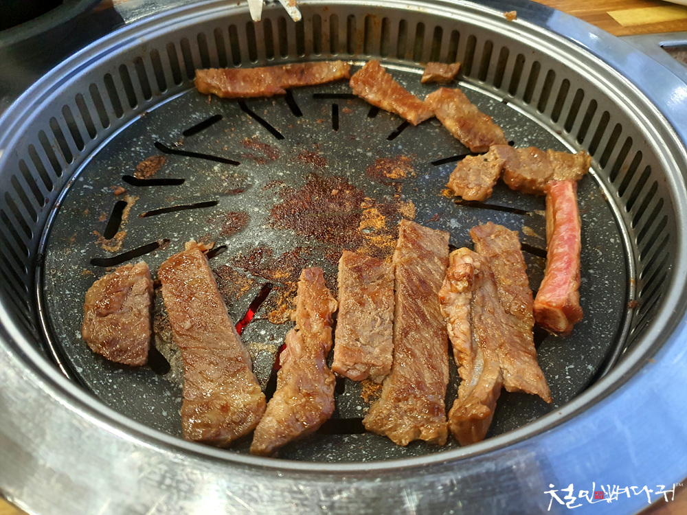 불판에 올려서 익혀줍니다.