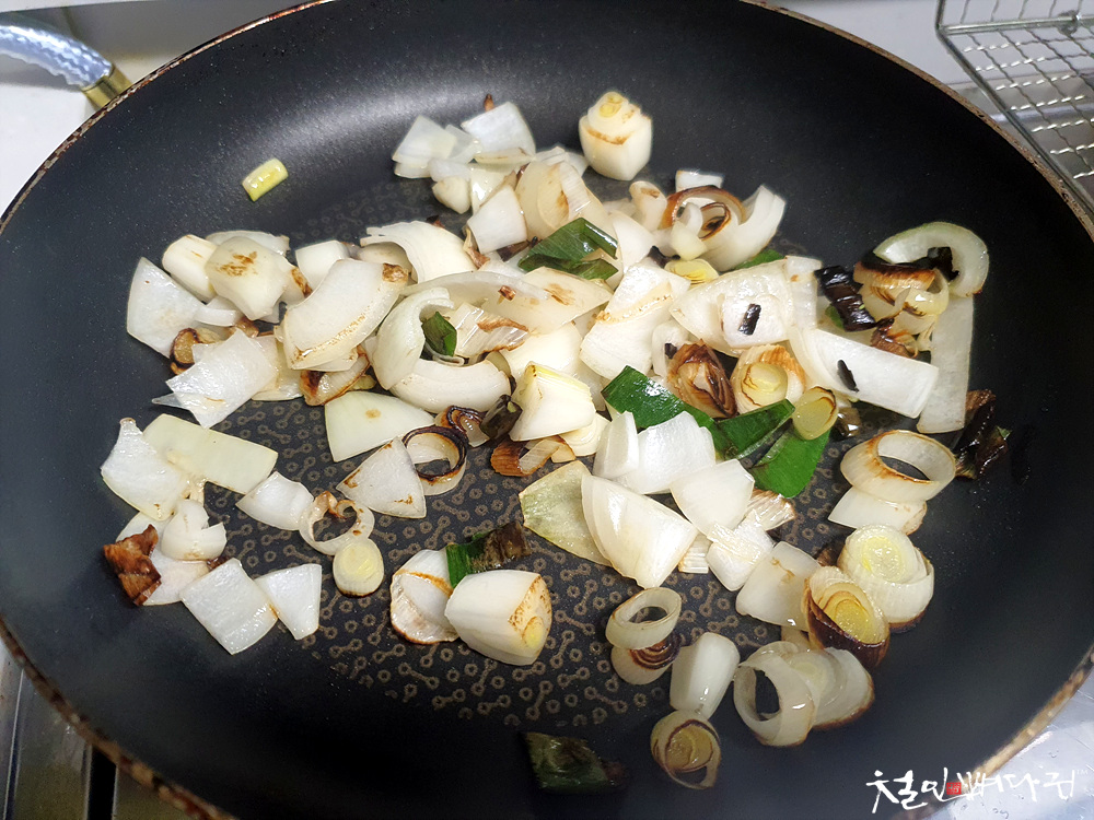 양파가 불 조절 실패로 조금 타기는 했는데, 괜찮습니다.