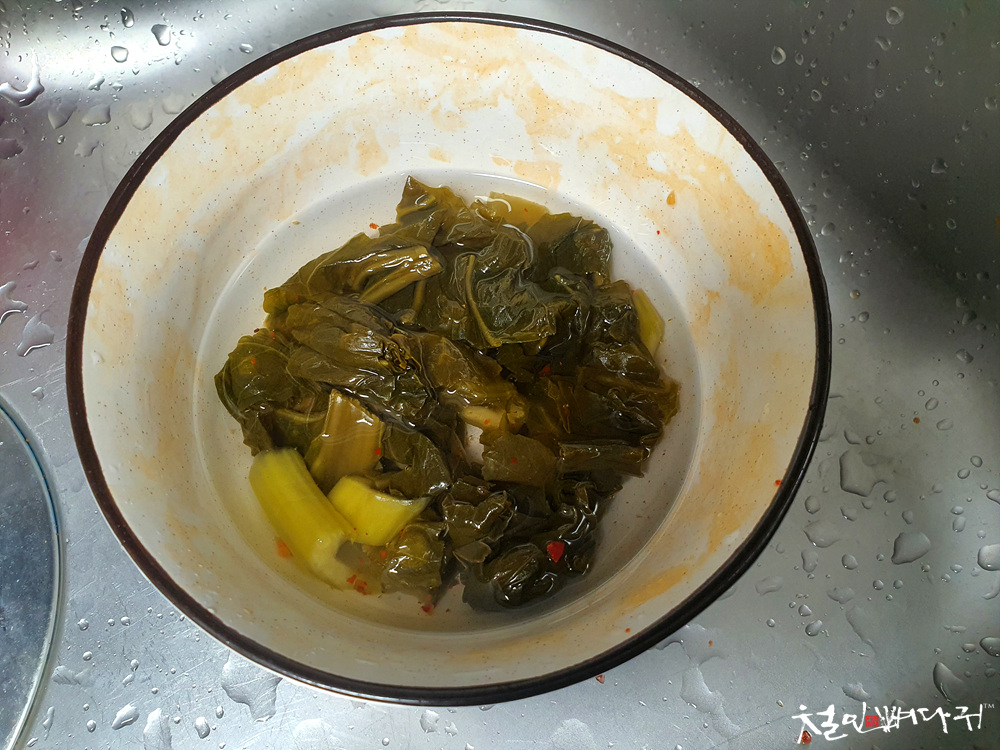 냉장고에 한참 전에 아는형님이 여수 갔다 오면서 사다 준, 갓김치가 있어서
