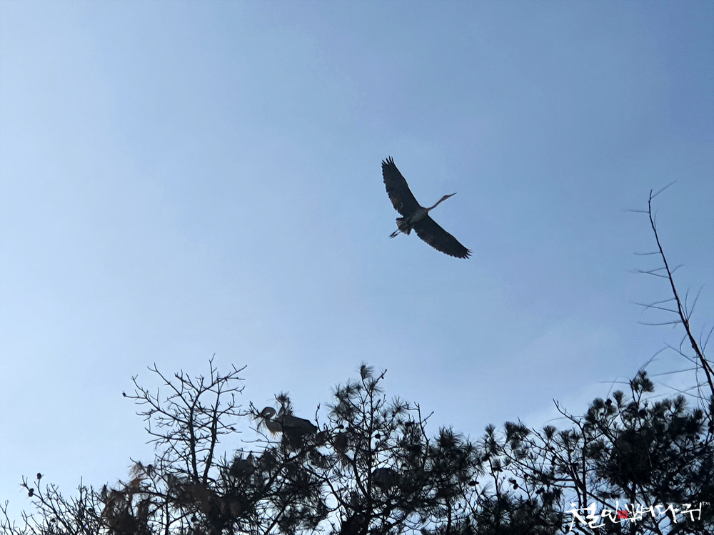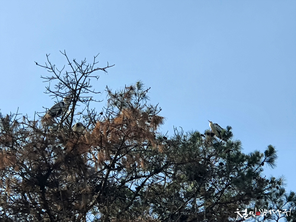 왜가리들의 울음소리는 많이 크게 들렸습니다.