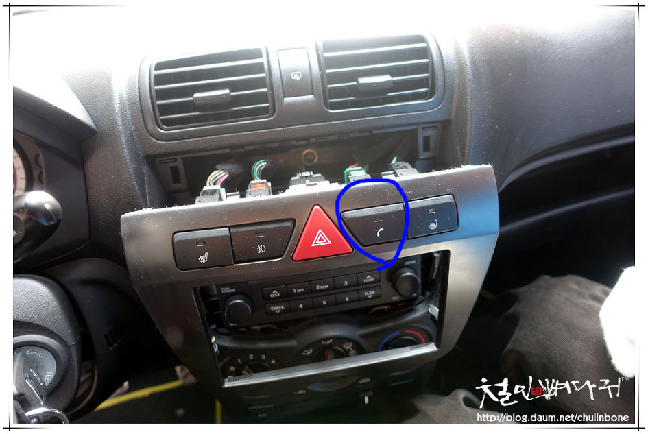 바로 통화버튼과 사진의 배선뭉치에서 선을 하나 찾아서 연결만 해주면 됩니다.