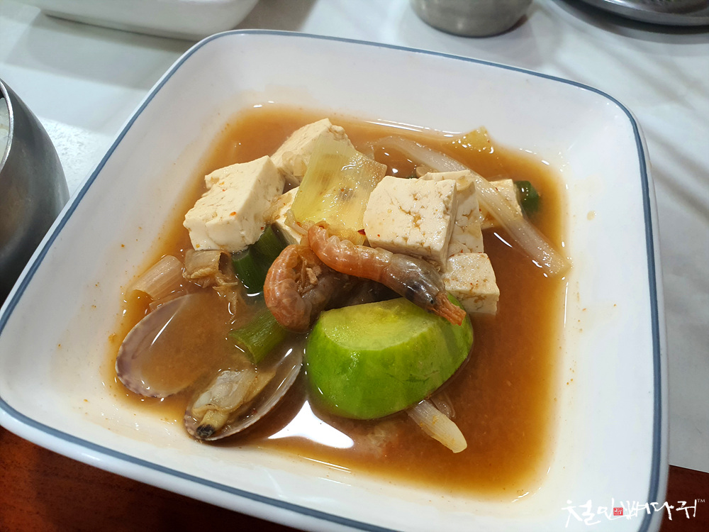 된장찌개는 새우가 들어있는데,