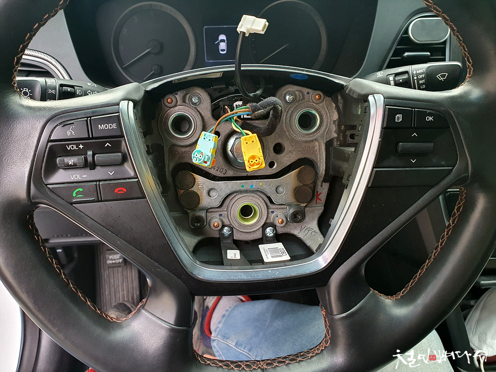 핸들 내부에 크루즈컨트롤 배선까지 기본 내장으로 되어 있어서