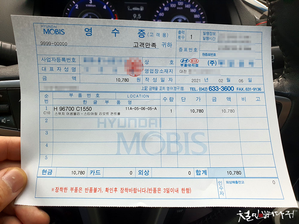 오늘 작업한 LF소나타는 오른쪽 핸들스위치가 존재하기 때문에