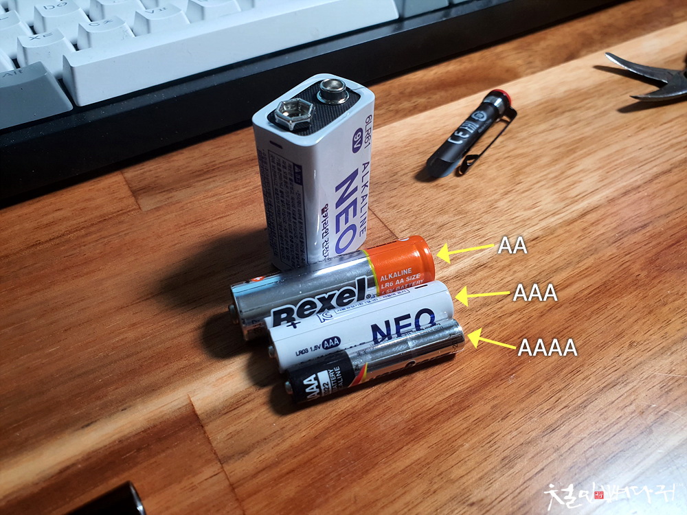흔하게 사용하는 AA, AAA 건전지와 비교입니다.