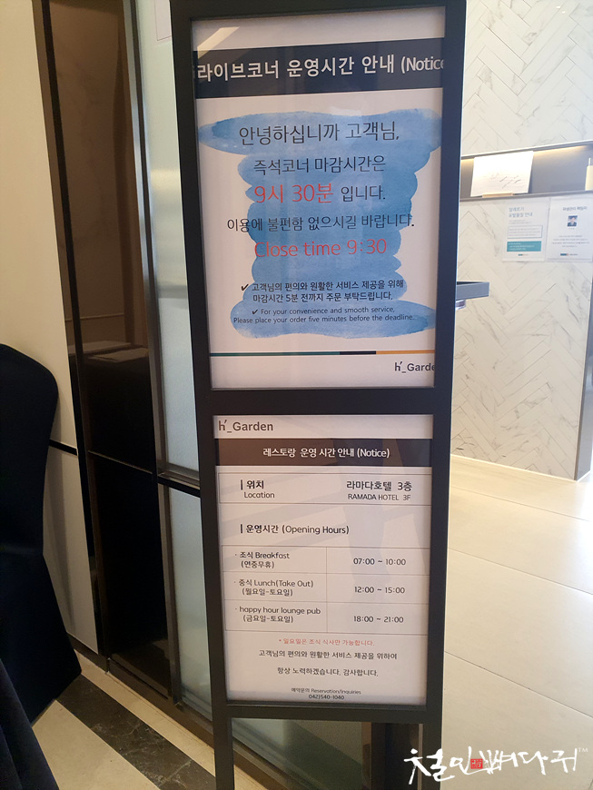대전 유성 라마다호텔 3층에 있는 h'_Garden(에이치가든) 식당입니다.