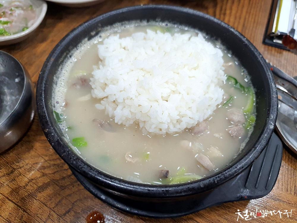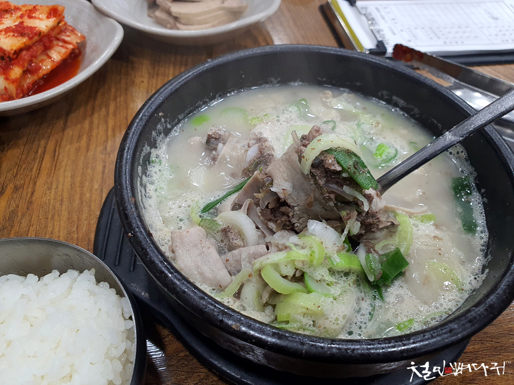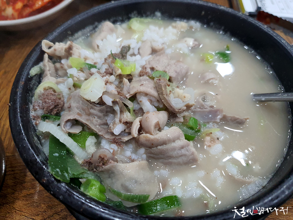 순대국밥의 국물은 사골국물 같은 느낌입니다.