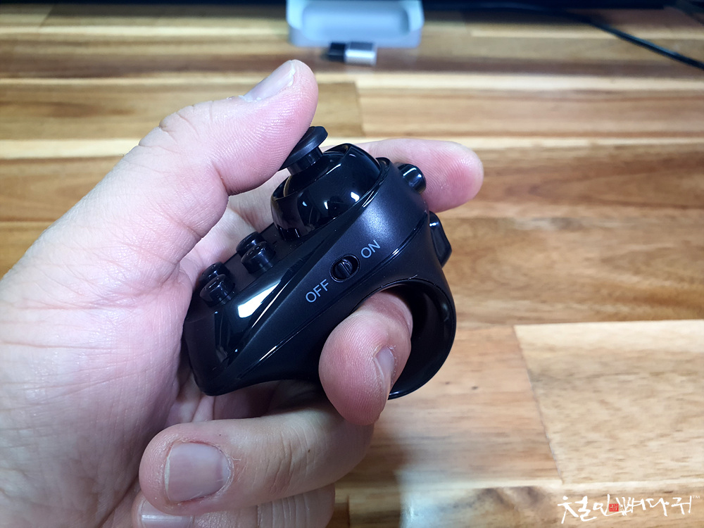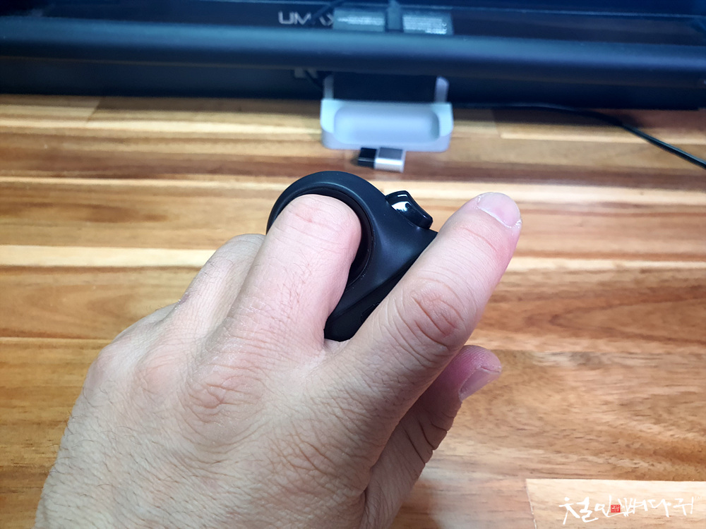 손가락에 걸고, 공중에서 조이스틱으로 마우스커서를 움직이고,