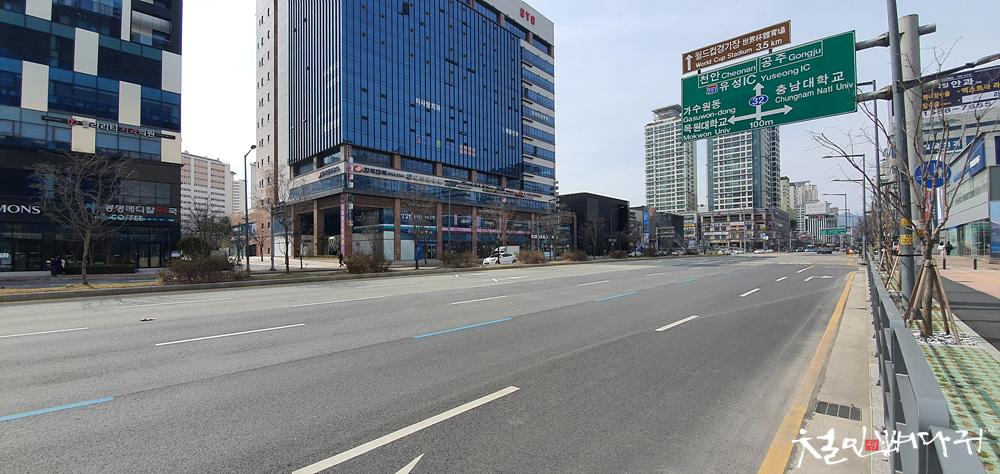 대전 유성 라마다호텔 앞 한적한 순간의 도로