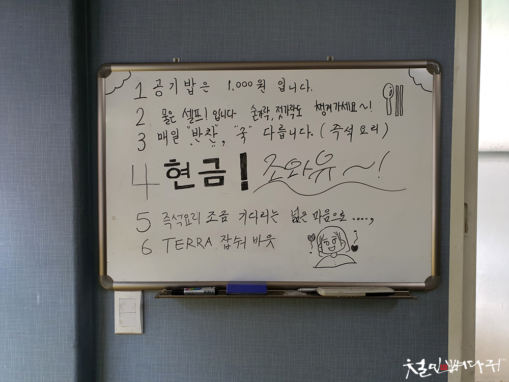 모든 반찬들이나 음식들은 즉석에서 만들어진다고 조금 늦어질 수 있다고 기다리는 여유를 요청하네요.