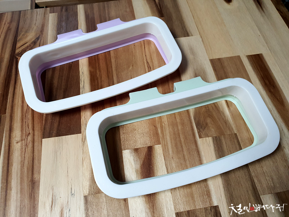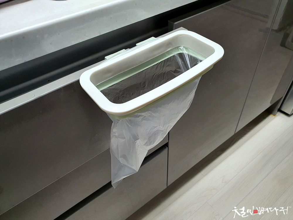 주방에서 쓰레기나 과일껍질 같은 것들을 모아둘 수 있는 비닐봉지를 걸어둘 수 있는 제품입니다.