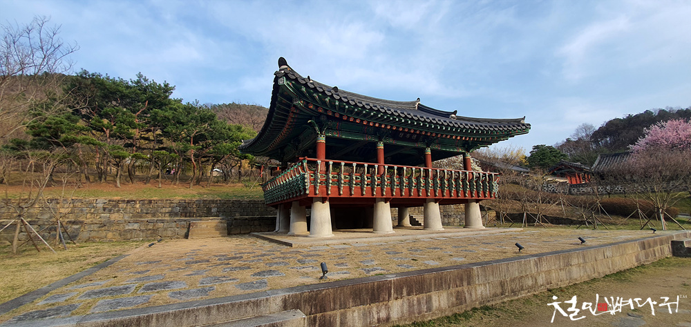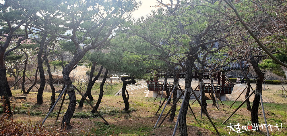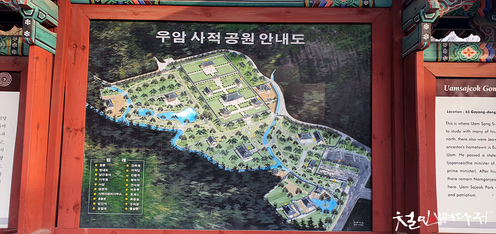 우암사적공원 정 중앙의 장소에 커다란 누각이 있고,