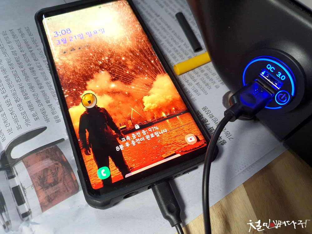 고속충전이 가능한 스마트폰을 연결하니, 정상적으로 고속충전이 됩니다.