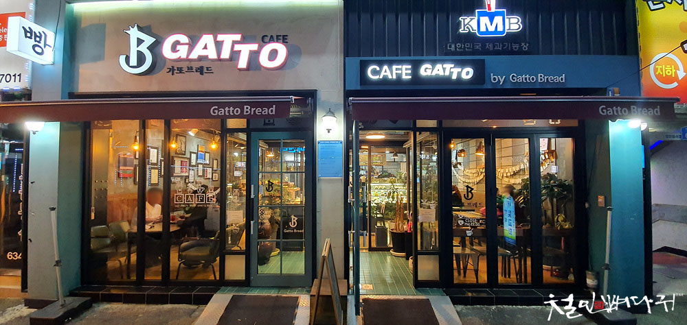 입구가 2곳으로 되어 있는데, 하나는 카페, 하나는 빵집으로 들어가는 분위기 입니다.